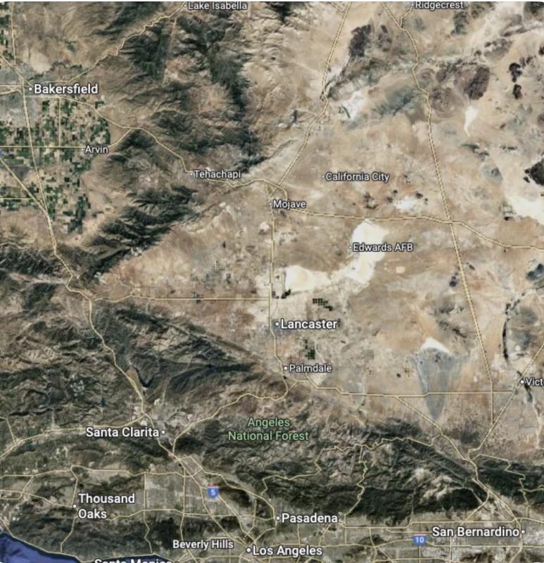 The two triangle sides are strike slip faults. The transverse Garlock fault intersecting with the plate boundary San Andreas fault, the Southern side of the triangle.