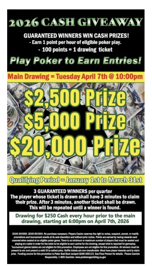 Earn 1 point per hour of eligible poker play